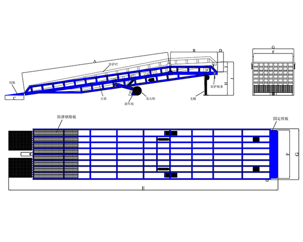 移动式登车桥载重量-叉车自重(3 吨油又自重4.5吨以上)+货物重量*1.4倍刹...